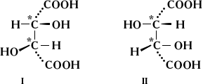 Конфигурация молекул, в стереохимии характеризует пространственное расположение атомов или групп атомов у асимметрического атома, у несимметрично замещенной двойной связи, у малого (жёсткого) цикла, у центрального атома в комплексах. Различия между конфигурациями молекул обусловливают существование двух видов устойчивых стереоизомеров — геометрических и оптических (см. Изомерия). При определении конфигурации широко применяют химические и особенно физические методы исследования. Так, специальным рентгенографическим методом удалось доказать, например, пространственное расположение заместителей у асимметричных атомов С (отмечены звёздочками) в молекуле винной кислоты. — в правовращающей (I) и левовращающей (II):