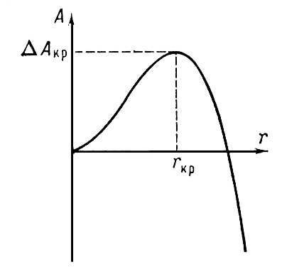 Рис. 1. Зависимость работы А, требующейся для образования кристаллического агрегата, от размера r зародыша.