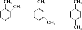Ксилолы, диметилбензолы. Известны все три изомера (орто-, мета-, пара-) —