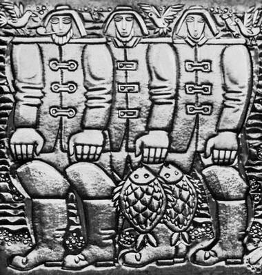 Э. Будвитене (Литовская ССР). «Рыбаки» (Центральная часть триптиха «Наше море»). 1971. Каунасский художественный музей им. М. К. Чурлёниса.