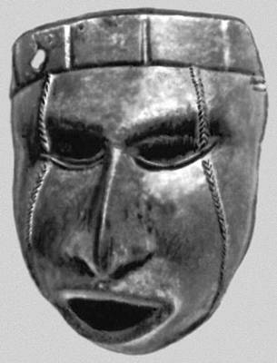 Маска, изображающая бога Шипе. Культура Западной Мексики. Национальный музей антропологии. Мехико.