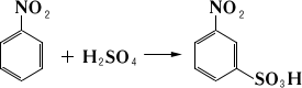 Нитробензол, СбН5NO2, простейшее ароматическое нитросоединение; бледно-жёлтая маслянистая жидкость; tпл 5,7 °С, tкип 210,9 °С, плотность 1,987 г/см3 (25 °С); в воде растворяется плохо. Хорошо смешивается с органическими растворителями. При восстановлении в зависимости от условий нитробензол превращается в анилин или в гидразобензол (см. Гидразосоединения). Последний под действием кислот изомеризуется в бензидин. Нитрование, сульфирование и хлорирование нитробензола происходят главным образом в мета-положение к нитрогруппе, например: