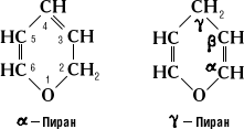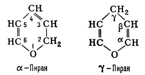 g-Пиран — бесцветная жидкость, tкиn 84 °С (с разложением); быстро разлагается также при комнатной температуре. Более устойчивы и доступны дигидро- и тетрагидропираны. Важные производные пиранов — a- и g-пироны. Пирановое кольцо входит в структуру многих природных веществ; например, гексозы (альдозы и кетозы) в большинстве своём являются шестичленными пиранозами.