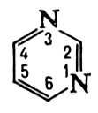 Пиримидин, 1,3-диазин, гетероциклическое соединение, бесцветные кристаллы, хорошо растворимые в воде, спирте, эфире; tпл 21 oC, tkип 124 oC.