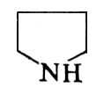 Пирролидин, тетраметиленимин, гетероциклическое соединение, бесцветная, дымящая на воздухе жидкость с аммиачным запахом; tкип 87—88 °С, плотность 0,8576 г/см3 (20 °С); хорошо растворима в воде.