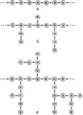 Полисахариды, в отличие от др. классов биополимеров, могут существовать как в виде линейных (а), так и разветвленных (б, в) структур (см. рис.).
