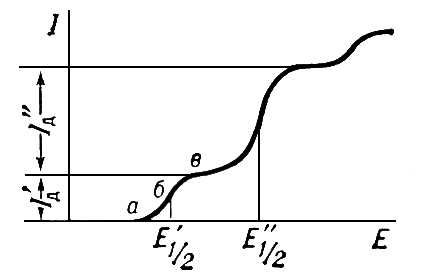 Классическая (постояннотоковая) полярограмма (даны абсолютные величины значений Е).