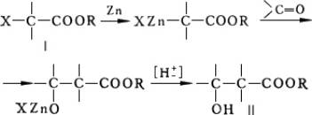 Реформатского реакция, синтез эфиров b-оксикарбоновых кислот (2) взаимодействием альдегидов или кетонов с эфирами a-галогенкарбоновых кислот (1) в присутствии металлического цинка: