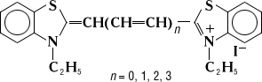 Сенсибилизирующие красители, сенсибилизаторы оптические, органические красители, обладающие свойством при адсорбции на поверхности кристаллов галогенсеребряных солей фотографических эмульсий придавать им чувствительность к лучам зелено-жёлтой, оранжево-красной или инфракрасной зон спектра. Несенсибилизированный галогенид серебра нечувствителен к этим лучам. Для строения сенсибилизирующих красителей, большинство которых относится к полиметиновым красителям, характерно содержание в их молекулах гетероциклических ядер и сопряжённой полиметиновой цепочки. От химической природы гетероциклических ядер и длины полиметиновой цепочки зависит область спектрального поглощения и сенсибилизации красителя, а также эффективность сенсибилизирующего действия (см. Сенсибилизация оптическая).