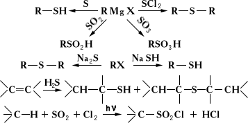 Основные методы синтеза сераорганических соединений основаны на реакциях органических соединений с элементарной серой или её простейшими неорганическими соединениями: