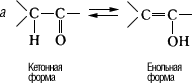 Таутомерия (от греч. tautós — тот же самый и méros — доля, часть), быстрая обратимая структурная изомеризация; способные к таутомерии вещества при установившемся равновесии представляют собой смеси двух (или нескольких) взаимопревращающихся изомеров — таутомеров (см. Изомерия). Наиболее распространена прототропная триадная таутомерия (миграция протона между крайними атомами триады — системы трёх атомов, два из которых связаны двойной связью; миграция сопровождается перемещением двойной связи). К этому виду таутомерии относятся кето-енольная (а), имино-енаминная (б), амидная (в), в том числе лактим-лактамная (г), трёхуглеродная (д), кольчато-цепная (е) и некоторые др.: