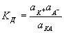 Значение Кд зависит от природы растворённого вещества и растворителя, а также от температуры и может быть определено несколькими экспериментальными методами. Степень диссоциации ее может быть рассчитана при любой концентрации a электролита с помощью соотношения: