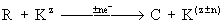 —электрохимическая реакция, где R — исходный продукт, К — катализатор-переносчик, С — конечный продукт, z — степень окисления, n — число электронов (е—), участвующих в реакции.