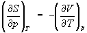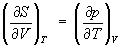 откуда следует, что при выборе в качестве независимых переменных внутренней энергии U и объёма V частные производные энтропии связаны с абсолютной температурой и давлением соотношениями: