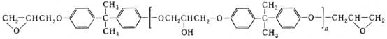 Эпоксидные смолы, олигомерные продукты поликонденсации эпихлоргидрина с многоатомными фенолами, спиртами, полиаминами, многоосновными кислотами, а также продукты эпоксидирования (т. е. введения эпоксидных групп) соединений, содержащих не менее двух двойных связей. Наибольшее распространение получили так называемые диановые эпоксидные смолы следующего строения: