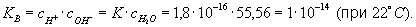 где с — молярные концентрации, а К — постоянная при данной температуре величина (1,8·10-16 г-ион/л при 22 °С). В 1 л воды содержится