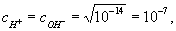 Нейтральным водным растворам отвечает pH = 7 лишь при комнатных температурах. При повышении температуры диссоциация воды усиливается, KB возрастает, и при 100 °С чистая вода имеет pH » 6. При температурах ниже 22 °С в чистой воде pH > 7. При этом во всех случаях в нейтральной среде cH+ = cOH-.