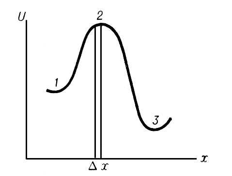 1 — начальное состояние; 2 — активированный комплекс; 3 — конечное состояние.