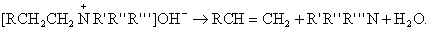 3) Термическое расщепление гидроокисей четвертичных аммониевых оснований с образованием третичного амина и олефина: