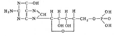 Гуаниловая кислота, мононуклеотид, состоящий из азотистого основания — гуанина, углевода — D-pибозы и одной молекулы фосфорной кислоты: Входит в состав рибонуклеиновых кислот (при их щелочном гидролизе обычно получают гуанозин-3-фосфат), а также в небольших количествах содержится в тканях в свободном состоянии в форме гуанозин-5-фосфата.