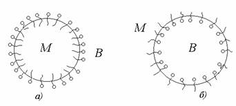 Рис. 2.65. Схема капель эмульсии: а- прямая; б- обратная |