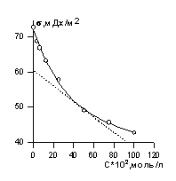 Поверхностное натяжение растворов ПАВ определяют одним из описанных выше методов. Полученные данных используют для построения изотермы поверхностного натяжения, пример которой показан на рис. 1.20.
