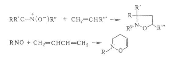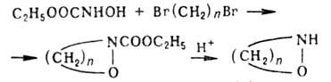 где п = 3,4. Тетрагидро-1,2-оксазол и 3,6-дигидро-1,2-оксазин, относящиеся к этому же типу гидроксиламина производных органических, образуются соотв. при взаимод. нитронов с олефинами и нитрозосоединений с бутадиеном:
