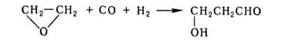 В р-цию, подобную гидроформилированию, вступают эпоксиды и карбонильные соед., напр.: