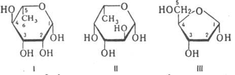 L-Рамноза и L-фукоза - структурные фрагменты гликозидов и полисахаридов наземных растений, водорослей и грибов. L-Фукоза содержится также в углеводных детерминантах групповых в-в крови и ряда др. биологически важных гликопротсинов и гликолипидов животных. 3,6-Дидезоксигексозы найдены в составе липополисахаридов грамотрицательных бактерий, нек-рые более редкие дезоксисахара - в составе антибиотиков. Специфич. углеводный компонент ДНК-2-дезокси-D-рибоза (III). Дезоксисахара получают гидролизом прир. соед. или синтезируют из обычных cахаров путем восстановления первичных тозилатов с помощью LiAlH4, замещением гидроксила на галоген с послед. гидрированием и др. Литература