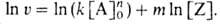 где [А] и [Z]-концентрации в-в А и Z, и и т-порядки р-ции по этим в-вам, k-константа скорости. Для кинетич. описания таких р-ций удобно использовать безразмерные характеристики: степень превращения x = [Z]/[A]0, где [А]0-концентрация в-ва А в момент времени t = 0, и величину