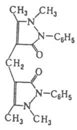 ДИАНТИПИРИЛМЕТАН [4,4-метилен-бис-(1,2-дигидро-1,5-диметил-2-фенил-3-пиразолон), ДАМ], мол. м. 388,47; бесцв. кристаллы; т. пл. 179°С (моногидрата 156°С); хорошо раств. в спиртах, кетонах, СНСl3, дихлорэтане, плохо - в воде (0,04%). Слабое основание; рКа для моно- и дипротонированной форм соотв. 2,25 и 0,15. Образует со мн. металлами комплексы [MRn]Xm и ионные ассоциаты (RH)n_m [MXn], где М = Ti, Zr, Hf, Th, Fe, Co, РЗЭ и др., X - однозарядный анион, m - степень окисления металла. Получают взаимод. антипирина с формальдегидом в кислой среде. Диантипирилметан - ингибитор кислотной коррозии, флотореагент.