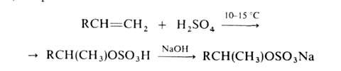 Алкилсульфаты, содержащие вторичные алкильные радикалы, синтезируют преим. взаимод. сульфирующих агентов с