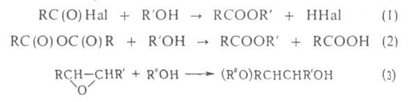 АЛКОГОЛИЗ, обменная р-ция между в-вом и спиртом. К алкоголизу, напр., относятся взаимод. спирта с галогенангидридами (1) и ангидридами к-т (2), с эпоксисоединениями (3):