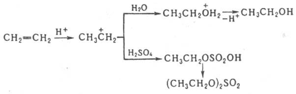 С к-тами Льюиса дает относительно устойчивые комплексы, напр., эфират трифторида бора (C2H5)2O.BF3, используемый как катализатор. В пром-сти диэтиловый эфир получают как побочный продукт в произ-ве этилового спирта гидратацией этилена в присут. фосфорной к-ты или 96-98%-ной H2SO4 при 65-75 °С и давлении 2,5 МПа: