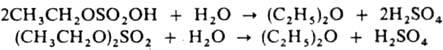 Осн. часть диэтилового эфира образуется на стадии гидролиза этилсульфатов (95-100°С, 0,2 МПа):