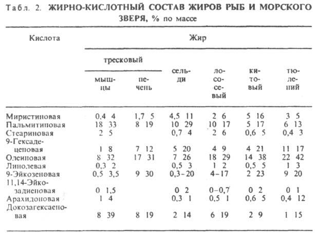 Мед. жир получают из печеночного жира тресковых рыб (треска, пикша, сайда), содержащего 1500-50000 МЕ/г витамина А и 40 200 МЕ/г витамина D, а также из подкожного сала китов. Переработку сырья в этом случае осуществляют в мягких условиях для предотвращения разрушения витаминов - мягким щелочным гидролизом или экстракцией р-рителями (жидким пропаном или спиртами). Мед. жир из подкожного сала китов и тюленей получают обработкой сырья острым паром при пониж. давлении. Техн. жиры (ворвань) получают в процессе произ-ва кормовой муки из разл. отходов рыбоконсервной пром-сти, из малоценного в пищ. отношении рыбьего сырья. Применяют сухой и мокрый способы вытопки, прессование и экстракцию. Экстракцию техн. рыбьего жира из прессованного сырья производят бензином или трихлорэтиленом. Из внутренностей рыб жиры выделяют также ферментативным способом, используя ферменты, находящиеся в пищеварит. органах рыб. Техн. жиры получают также из подкожного сала и мяса морских животных мокрой вытопкой под давлением. Получаемый китовый жир содержит разл. кол-во своб. жирных к-т и имеет разл. окраску - от светло-желтой до темной. На техн. нужды используют темные жиры; светлые, с содержанием своб. жирных к-т не более 6%, после гидрирования применяют для произ-ва маргарина (см. Гидрогенизация жиров). Жиры животные и продукты их переработки применяют как пищ. продукты или как сырье для получения таких продуктов, в качестве подкормки с.-х. животных, для произ-ва мыла и моющих ср-в, жирных к-т, глицерина, косметич. ср-в, смазочных материалов, ср-в обработки кожи, в медицине - как источник витамина А. Жиры рыб используют как добавки к высыхающим растит. маслам в произ-ве олиф и алкидных смол. Мировое произ-во разл. жиров животных, в т. ч. в СССР (1984, тыс. т): говяжьего 6349, молочного 7032, рыбьего 1071.