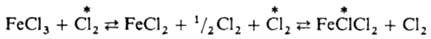 и парами FeCl3 также определяется диссоциацией FeCl3 при нагр. с образованием FeCl2 и атома Сl: