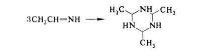 Альдимины и кетимины-жидкие или твердые в-ва; не раств. в воде, раств. в орг. р-рителях. Производные альдегидов и низших алифатич. кетонов неустойчивы, легко тримеризуются, напр.: