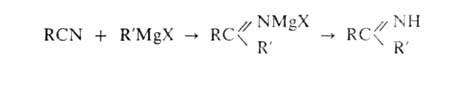 Кетимины синтезируют присоединением к нитрилам металлоорг. соед. (Mg, Li, Zn, A1), напр.: