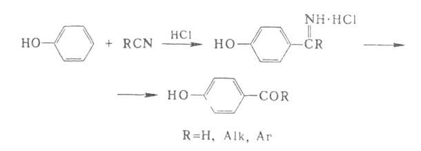 Альдимины и кетимины получают также взаимод. фенолов и их эфиров с HCN или нитрилами (кат.-хлориды Zn, Cu, Fe):
