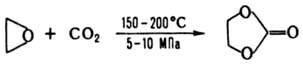 Они м. б. также получены гидроформилированием спиртов и фенолов в присут. соед. Сu и Pd и непосредственно из алкенов, напр., при взаимод. последних с О2 и СО2 в присут. галогенидов и др. соед. Сu. Основной пром. способ синтеза циклич. Карбонаты - взаимод. оксиранов с СО2 в присут. неорг. или орг. галогенидов, напр.: