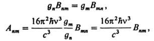 где gn(gт) - кратность вырождения энергетич. уровня n(m), с-скорость света. В мол. спектроскопии в качестве радиац. характеристики часто используется сила осциллятора fmn ~ vmnBmn. Коэф. Эйнштейна и силу осциллятора для мол. системы можно рассчитать, если известны волновые ф-ции исходных и конечных энергетич. состояний и оператор момента перехода