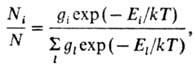 В условиях термодинамич. равновесия относит. заселенность i-го энергетич. уровня Ni /N (N-полное число молекул, Ni—число молекул на энергетич. уровне Ei)зависит от т-ры Т окружающей среды и описывается ф-л о й Б о л ь ц-м а н а:
