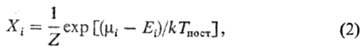 i*), обмен энергии внутри колебат. подсистемы происходит быстрее, чем между колебаниями и поступат. движением молекул. Заселенности Xi таких уровней определяются выражением