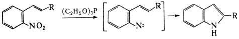 При действии Р(III) на ароматические нитросоединения происходит последоват. дезоксигенирование группы NO2 с образованием высокореакционноспособных нитренов. Р-цию используют для синтеза конденсир. гетероциклов, напр.: