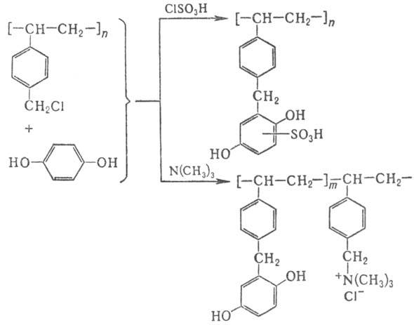 , тимолфталеином, гидрохиноном, дигидрохло-ранилом. Ионы, участвующие в окислит.-восстановит. превращениях, связаны с полимерной матрицей ионными или координац. связями. Существ. недостаток таких редокс-ионитов-переход этих ионов в р-р вследствие гидролиза.