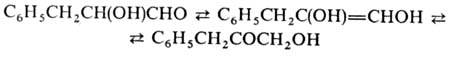 Аналогично ведут себя 1,2-гидроксикетоны. Под действием к-т 1,2-гидроксиальдегиды и 1,2-гидроксикетоны превращ. друг в друга, напр.: