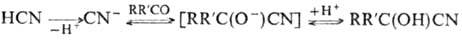 -оксинитрилы (циангидрины) RR'C(OH)CN,