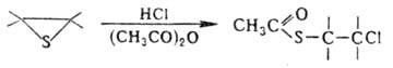 Региоселективность раскрытия цикла олефинов тиооксидов электрофилами ниже, чем нуклеофилами. При взаимод. с НСl и НВг в безводных средах и конц. водных р-рах олефинов тиооксиды превращаются в