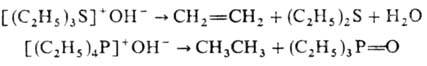 Стабильность ониевых соединений уменьшается при переходе от элементов V гр. к элементам VII гр. периодич. системы. Р-ры ониевых соединений в воде электропроводны. Гидроксиды ониевых соединений (X = ОН)-сильные основания, при термолизе образуют олефины (при Э = N, S, Se, Те) или алканы (при Э = P, As, Sb), напр.: